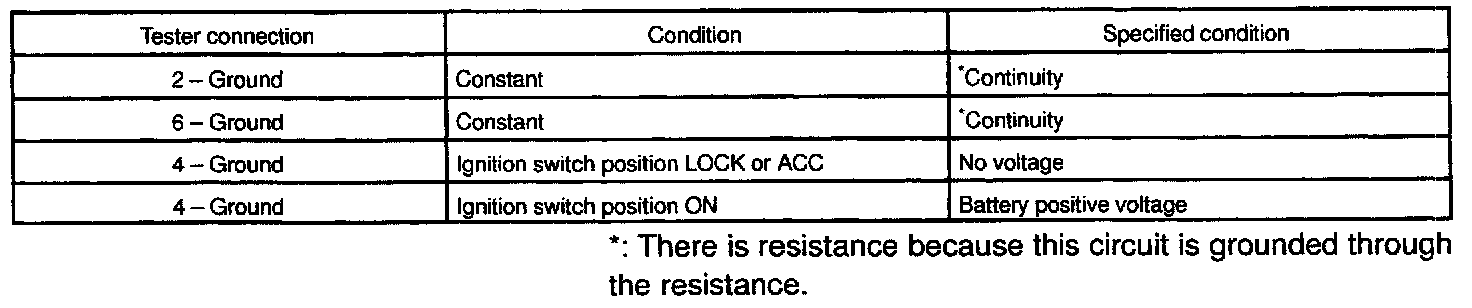 If the circuit is not as specified, inspect the circuits connected to other parts.