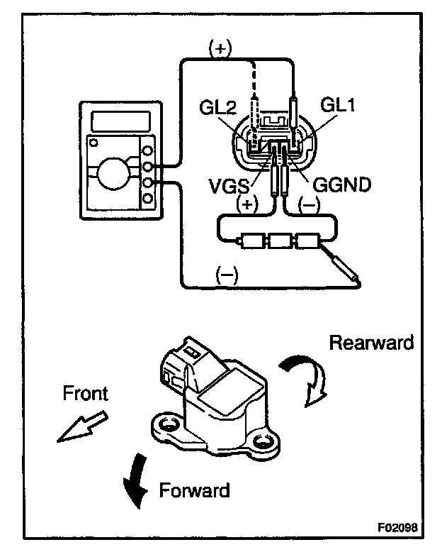 - When inspecting deceleration sensor, remove it with the bracket together. Do not remove the sensor from the bracket. When replacing deceleration sensor, replace the sensor with it assembled to the bracket assembly.
