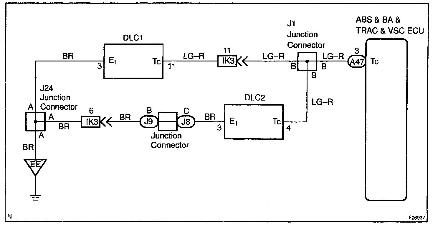 Connecting terminals To and E1 of the DLC2 or DLC1 causes the ECU to display the DTC by flashing the ABS warning light.