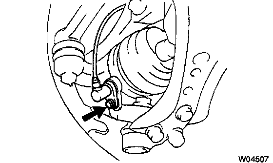 a. Remove the bolt, flexible hose and speed sensor harness clamp from the shock absorber.
