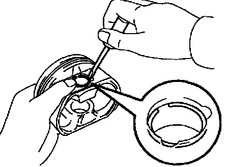 a. Using a small screwdriver, install a new snap ring at one end of the piston pin hole.