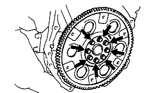 Remove the 8 bolts, rear plate, drive plate and front spacer.