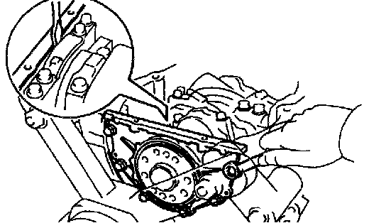 b. Using a screwdriver, remove the oil seal retainer by prying the portions between the oil seal retainer and main bearing cap.