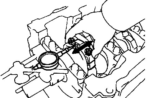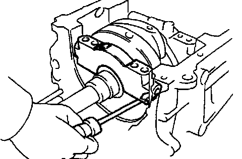 Using a dial indicator, measure the thrust clearance while prying the crankshaft back and forth with a screwdriver.