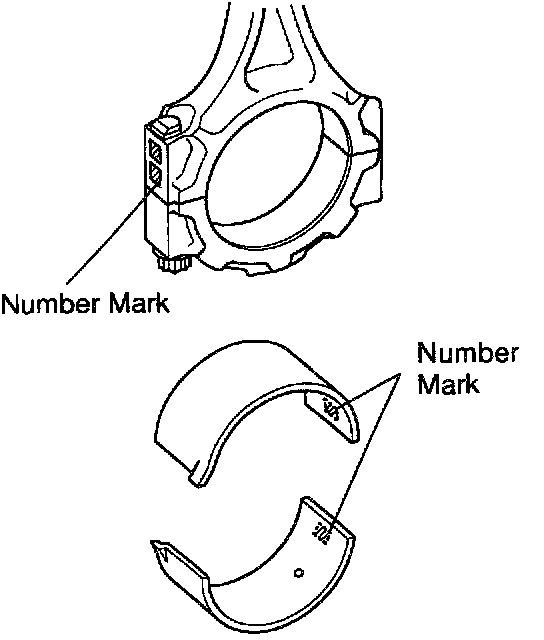 HINT: If replacing a bearing, replace it with one having the same number as marked on the connecting rod. There are 4 sizes of standard bearings, marked "1", "2", "3" and, "4" accordingly.