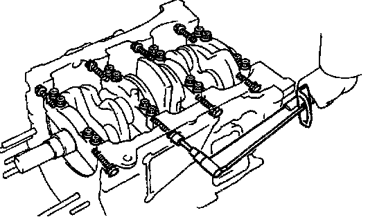 NOTICE: Pull up the main bearing cap little by little to the right and the left by turns and pay affection not to damage the joint surface of the cylinder block and the main bearing cap.