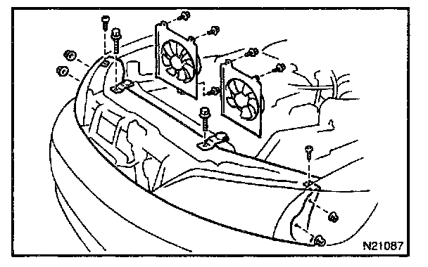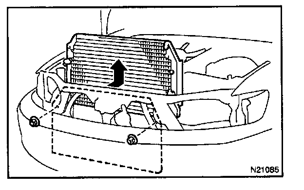 a. Remove the 2 nuts from condenser upper mountings.