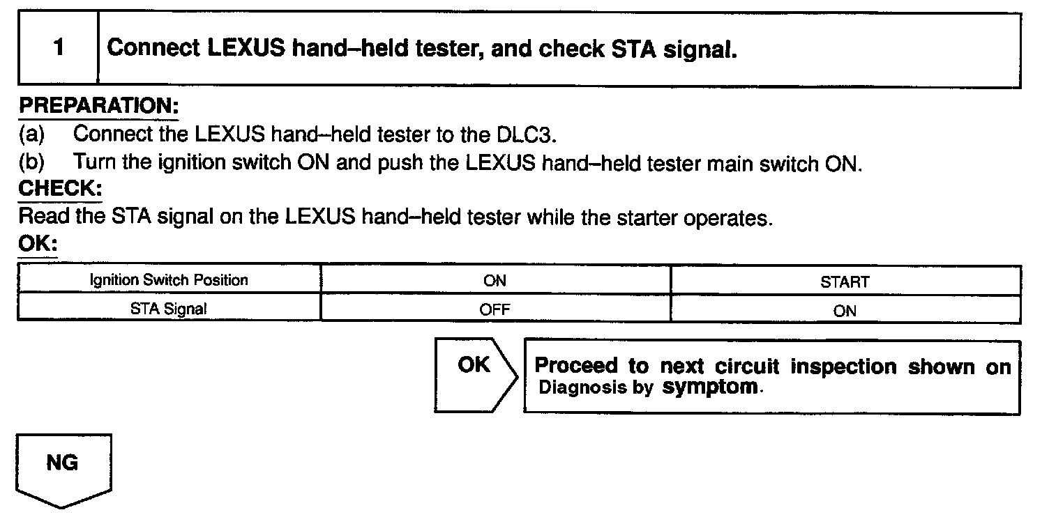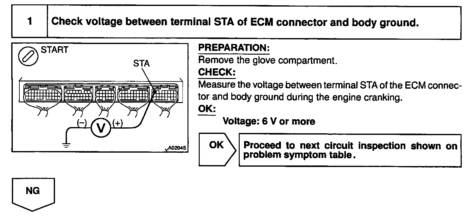 HINT: This diagnostic chart is based on the premise that the engine is cranked normally. If the engine is not cranked, proceed to the problem symptoms table.