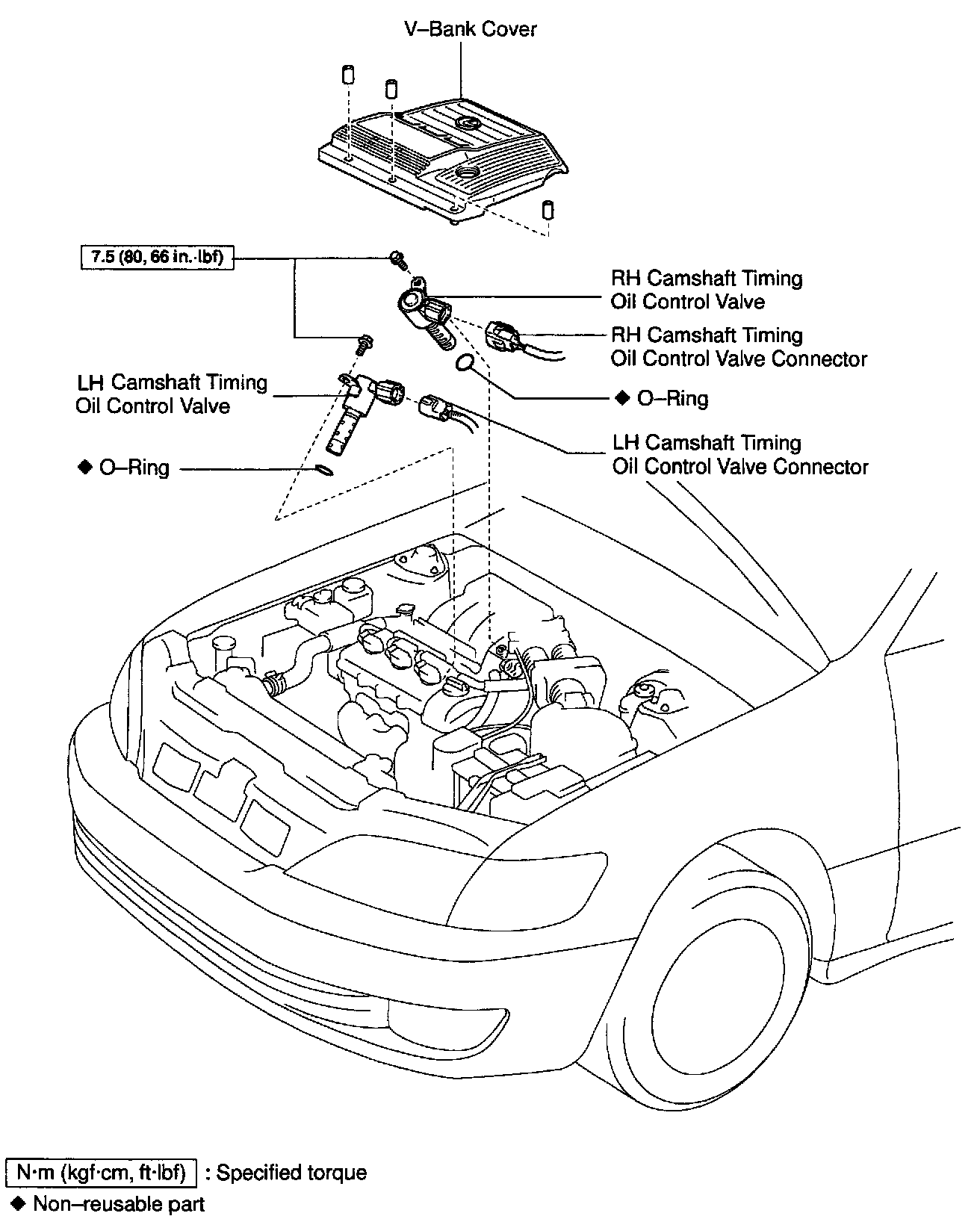 c. Remove the O-ring from the each camshaft oil control valve.