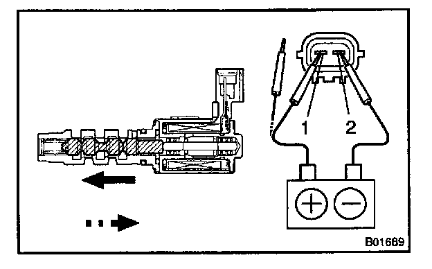 Connect the positive (+) lead from the battery to terminal 1 and negative (-) lead to terminal 2, and check the movement of the valve.
