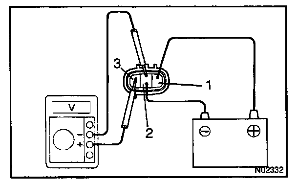 d. Check that there is voltage change from approx. 0 V to 11 V or more between terminals 2 and 3.