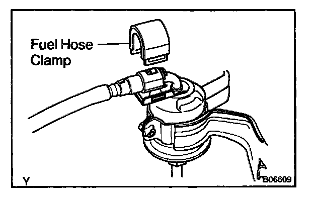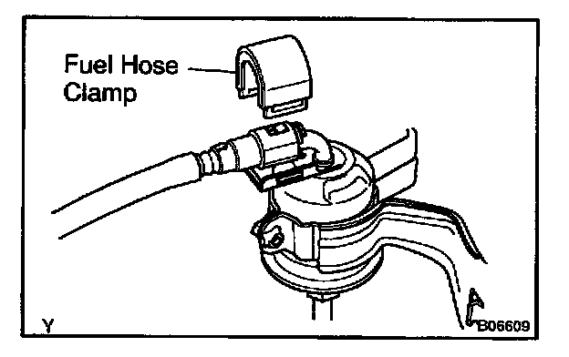 d. Remove the fuel hose clamp.