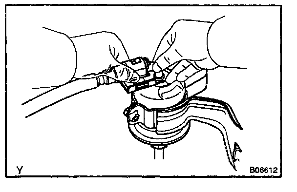 e. Disconnect the No.1 fuel pipe (fuel tube connector) from the fuel filter outlet.
