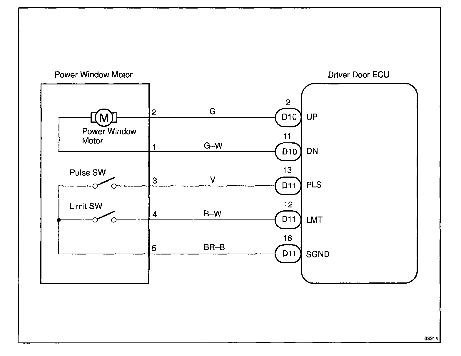 Jam protection pulse switch is built-in the power window motor. Pulse switch outputs