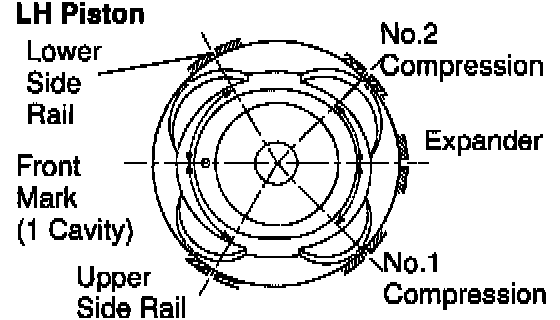 NOTICE: The shape of the piston varies for the RH and LH banks. The RH piston is marked with "R", the LH piston with "L".