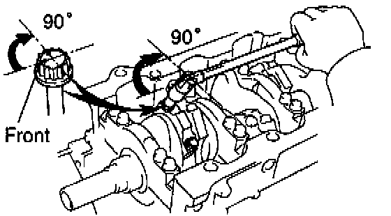 d. Retighten the main bearing cap bolts by 90° in the numerical order shown.