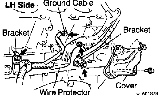 c. Install the engine wire to the RH side of the cylinder block with the 2 bolts.