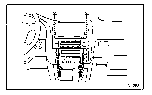 b. Remove the 2 screws and A/C control assembly from the radio.