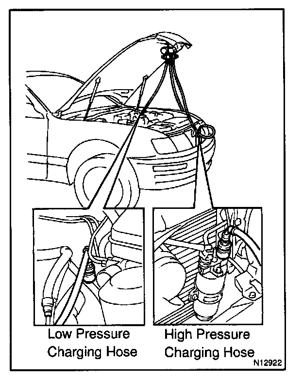 SET ON1. CONNECT CHARGING HOSE TO MANIFOLD GAUGE SET