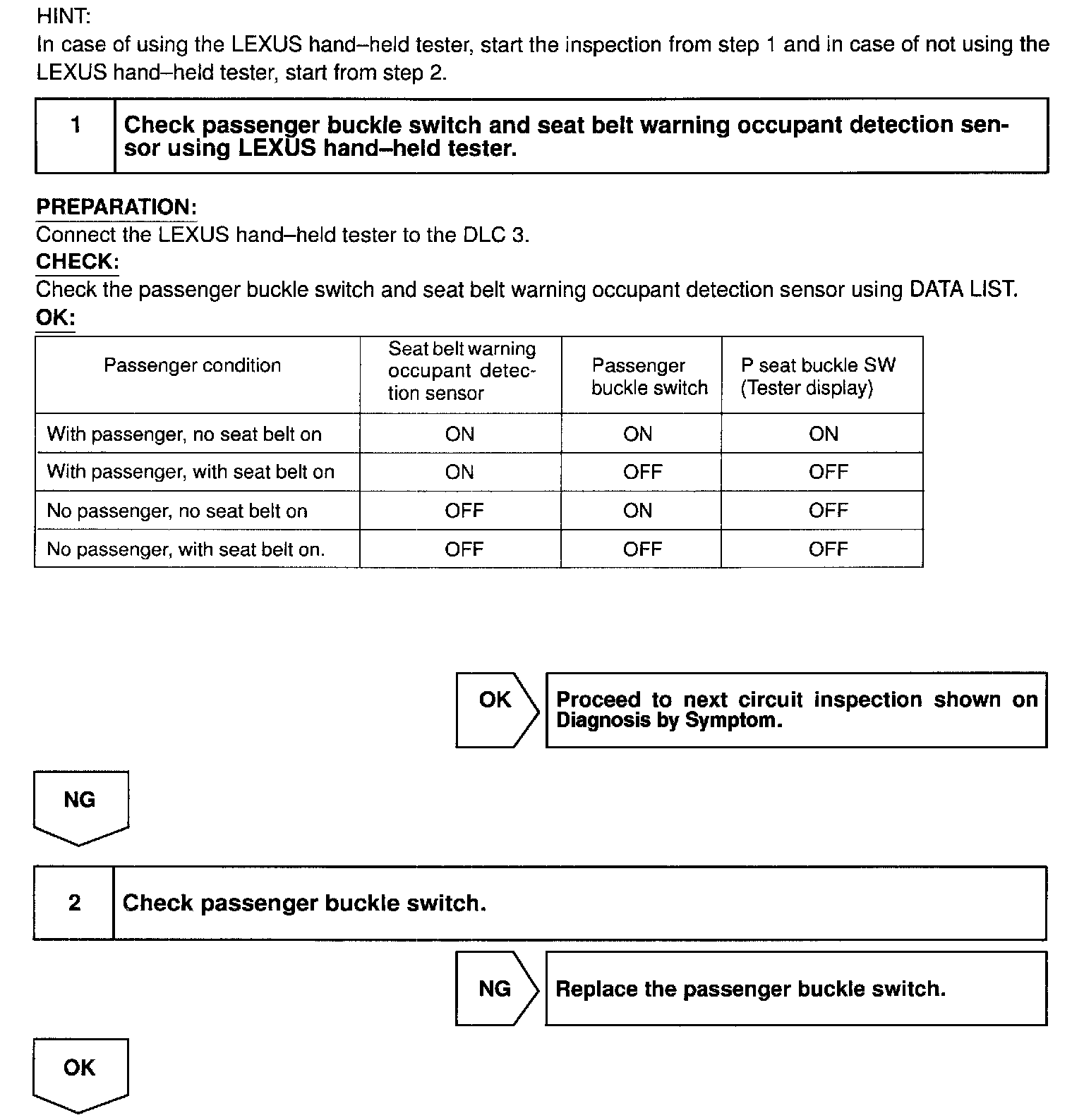 Passenger Buckle SW/Belt Warning Occupant Detection Sensor CKT