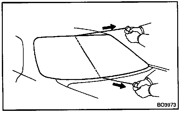 HINT: Refer to the installation of windshield, install back window glass by the following operations.