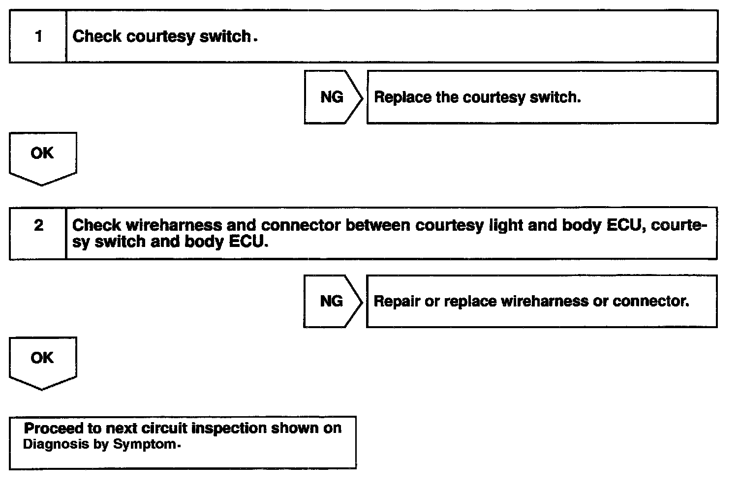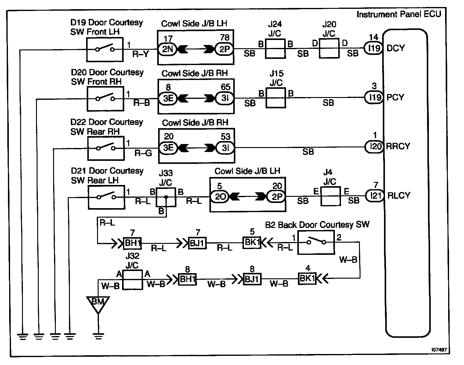 The door courtesy switch goes on when the door is opened and goes off when door is closed.