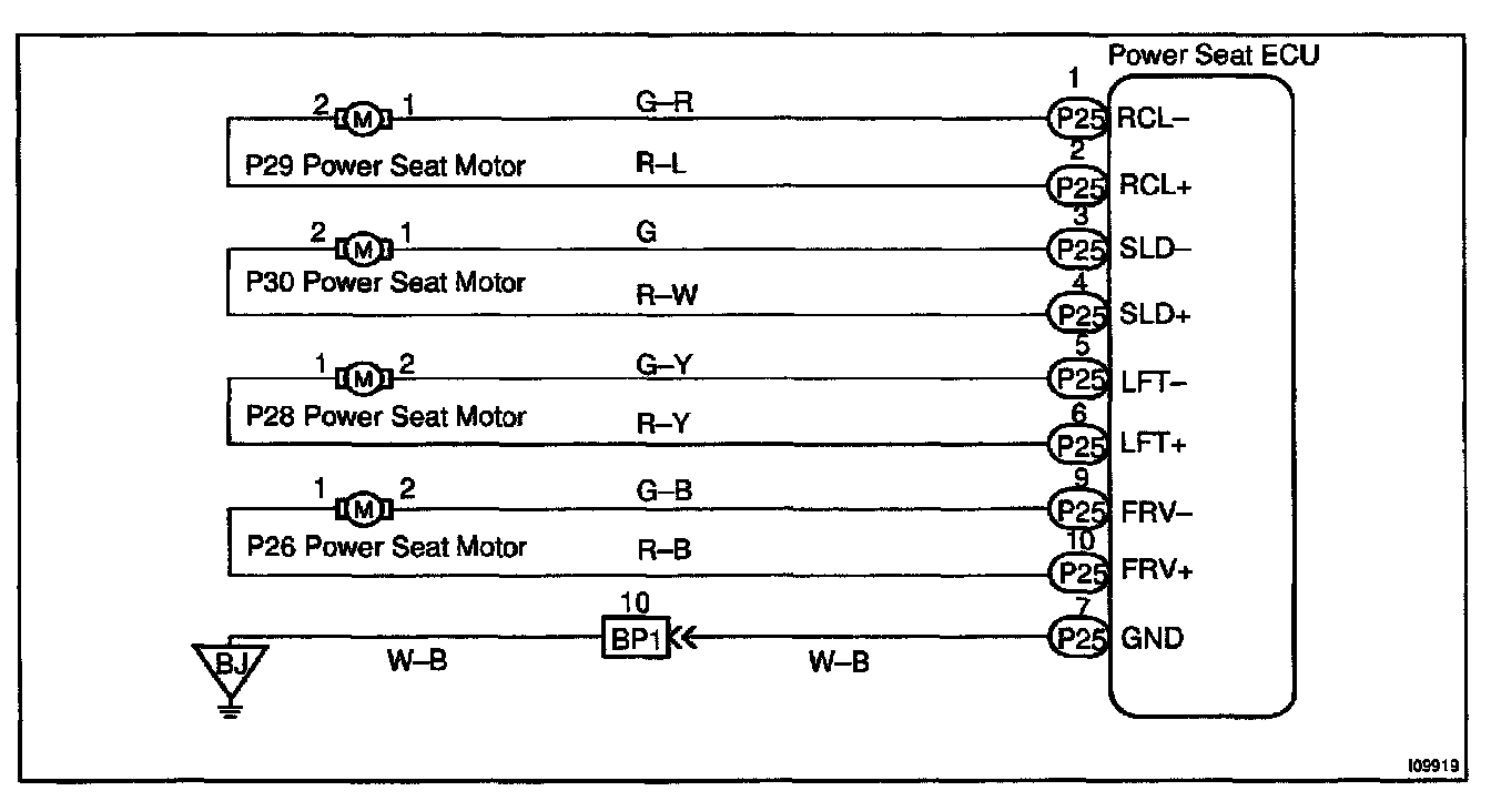 The Seat Position Control ECU controls the 4 motors for slide, front vertical, rear vertical and reclining.
