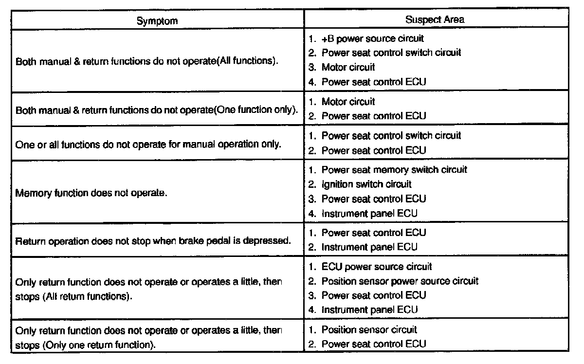 - If the trouble still reappears even though there are no abnormalities in any of the other circuits, then check and replace the Seat Position Control ECU as the last step.