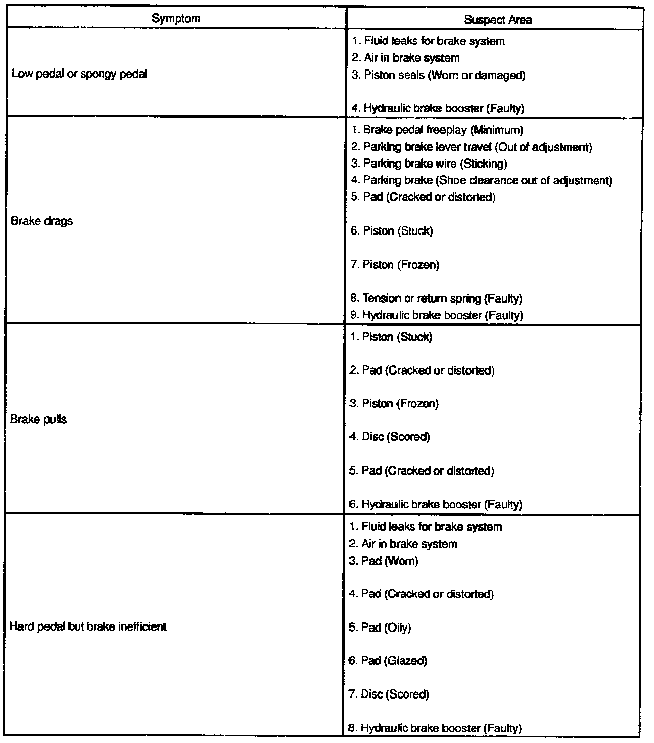 PROBLEM SYMPTOMS TABLE
