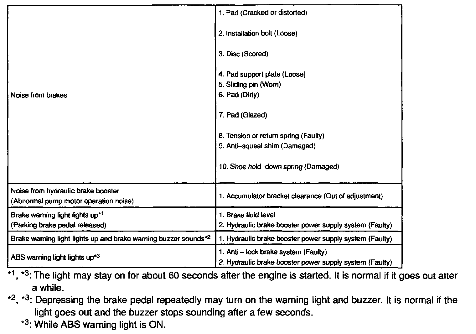 Use the table to help you find the cause of the problem. The numbers indicate the priority of the likely cause of the problem. Check each part in order. If necessary, replace these parts.