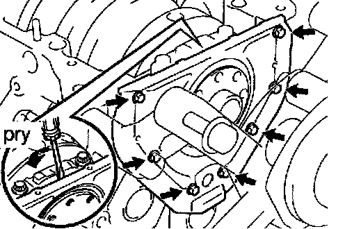 b. Using a screwdriver, remove the oil seal retainer by prying the portions between the oil seal retainer and main bearing cap.