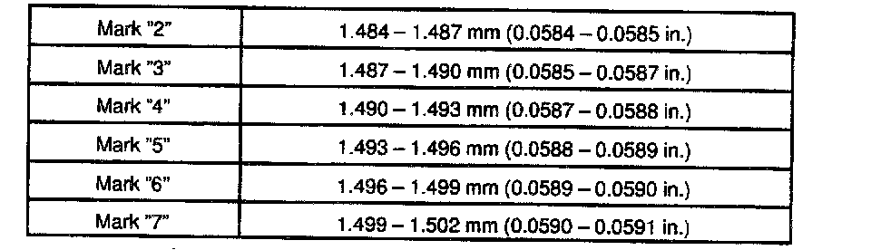Standard clearance: 0.040 - 0.058 mm (0.0016 - 0.0023 inch)