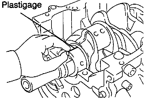 g. Lay a strip of Plastigage across each journal.