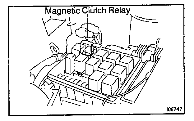 1. REMOVE MAGNETIC CLUTCH RELAY (Marking: MGCLT) FROM ENGINE ROOM RELAY BLOCK