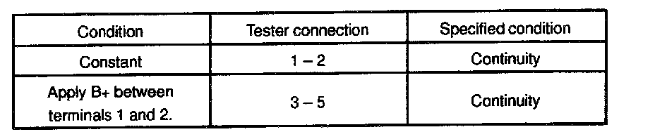 If continuity is not as specified, replace the magnetic clutch relay.