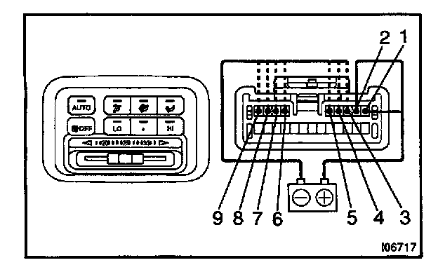 a. Connect the positive (+) lead from the battery to terminal 1 and negative (-) lead to each terminal, then check that the indicator lights up, as shown in the chart.