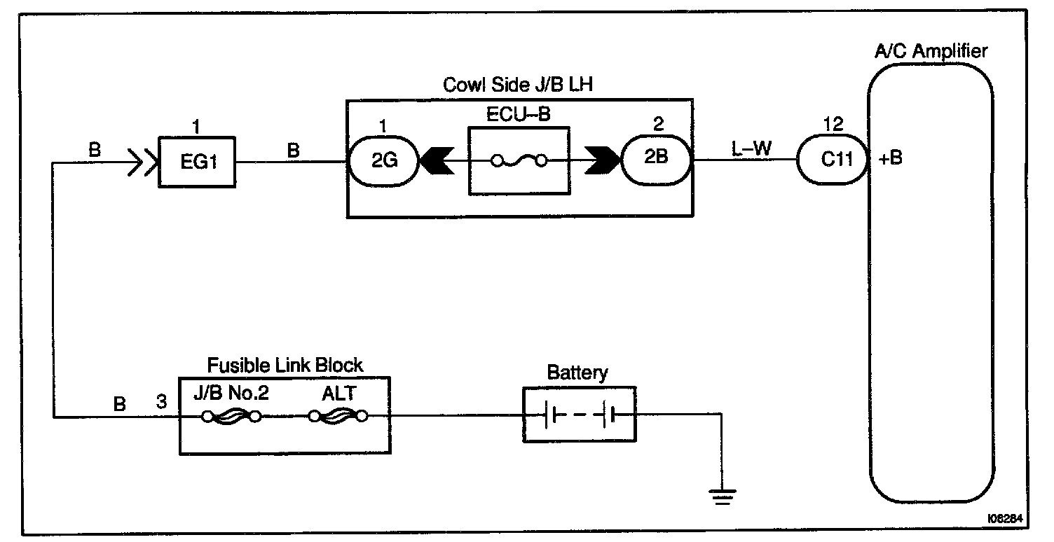 CIRCUIT DESCRIPTIONThis is the back up power source for the A/C control assembly. Power is supplied even when the ignition switch is off and is used for diagnostic trouble code memory, etc.