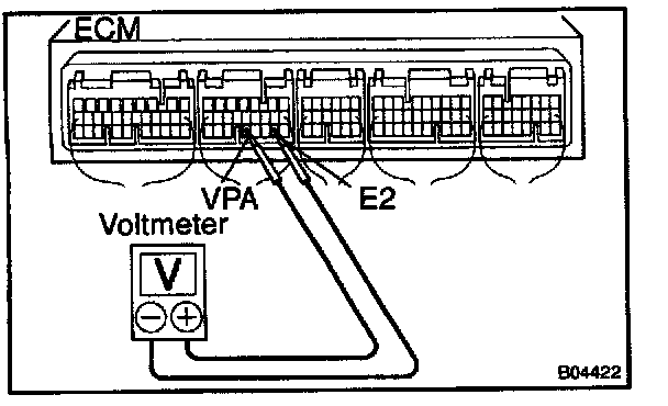 If you have no LEXUS hand-held tester, measure voltage between terminals VPA and E2 of the ECM connector.