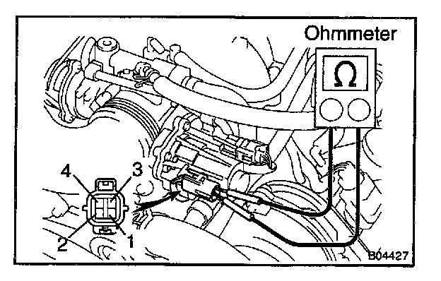 c. Using an ohmmeter, measure the clutch resistance between terminal 3 (CL-) and 4 (CL+).