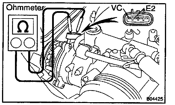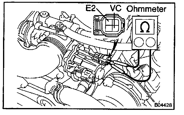 b. Using an ohmmeter, measure the resistance between terminals VC and E2.