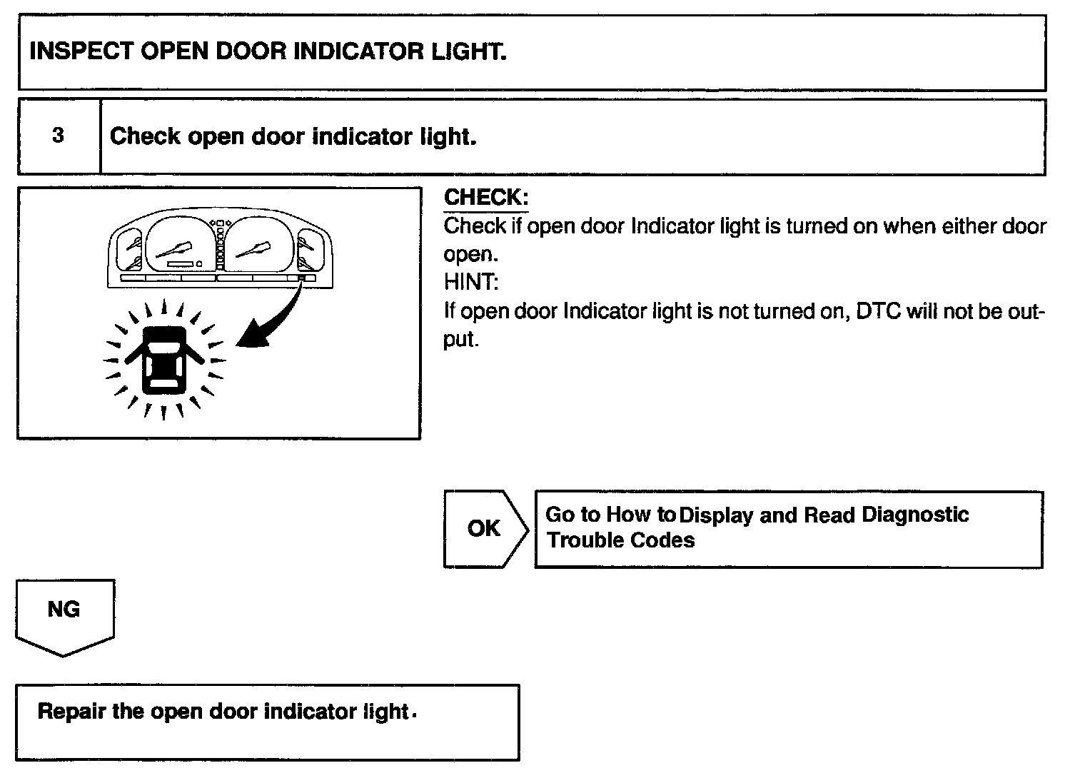 Step 3 / Inspect Open Door Indicator Light.: