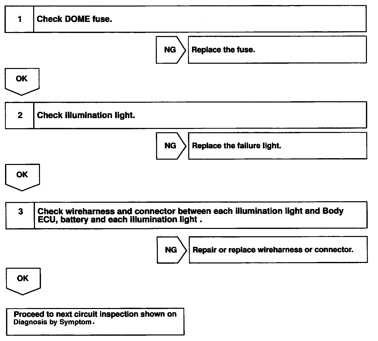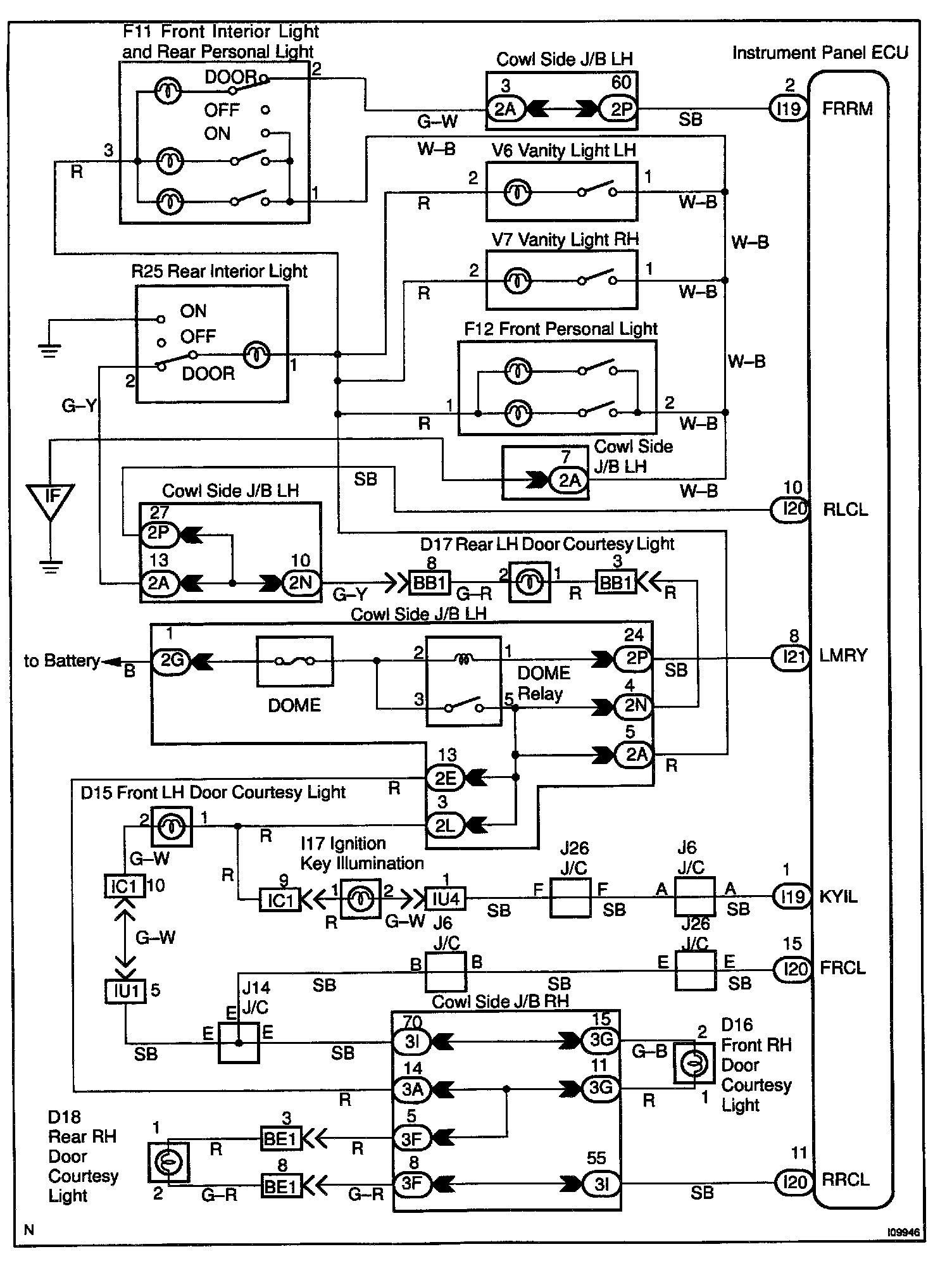Receiving the courtesy signal from the Body ECU will make the interior light, ignition light, and courtesy light come on.