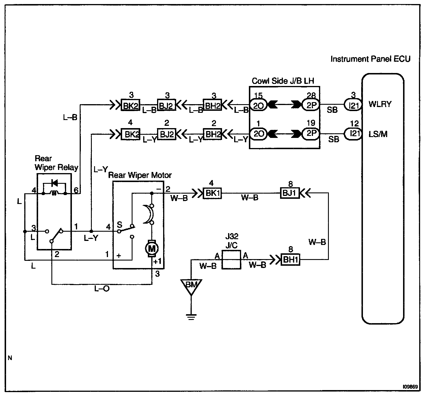 Rear Wiper Motor and Relay Circuit