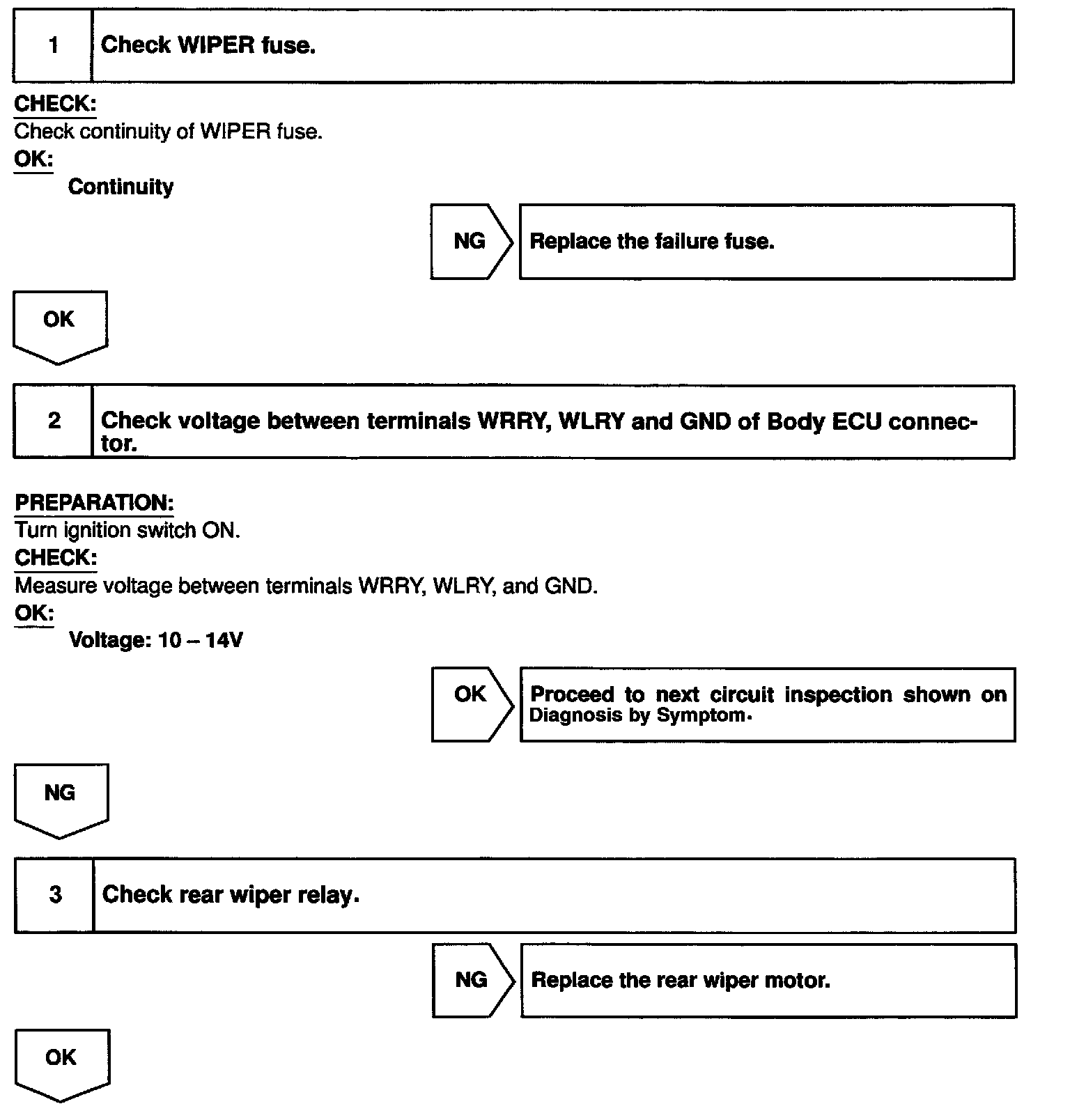 CIRCUIT DESCRIPTIONWiper motor is controlled by the Body ECU. Even CPU is in the failure, its circuit structure enables to operate the wiper with "High" mode.