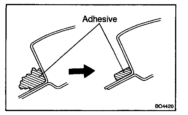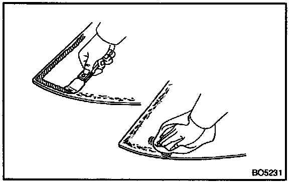 b. Cut off the old adhesive around the clips and spacers installation area.