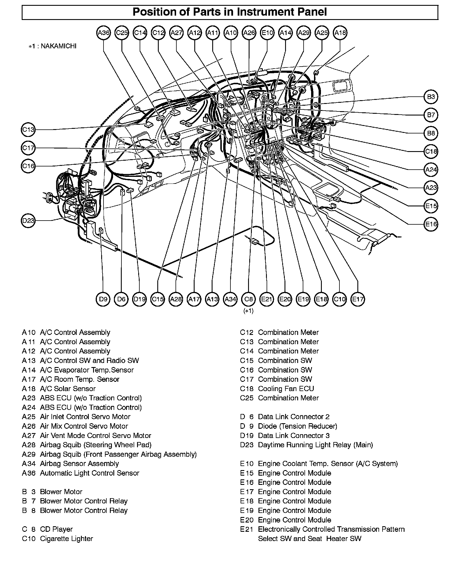 Position Of Parts In Instrument Panel:
