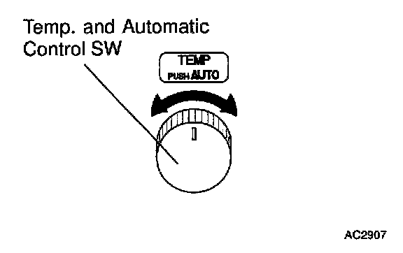 By turning the temperature control switch, the set temperature of the A/C can be adjusted in steps of 1° F (USA) or 0.5 ° C (Canada). Turning the switch fully will set the A/C to MAX. COLD or MAX. HOT.