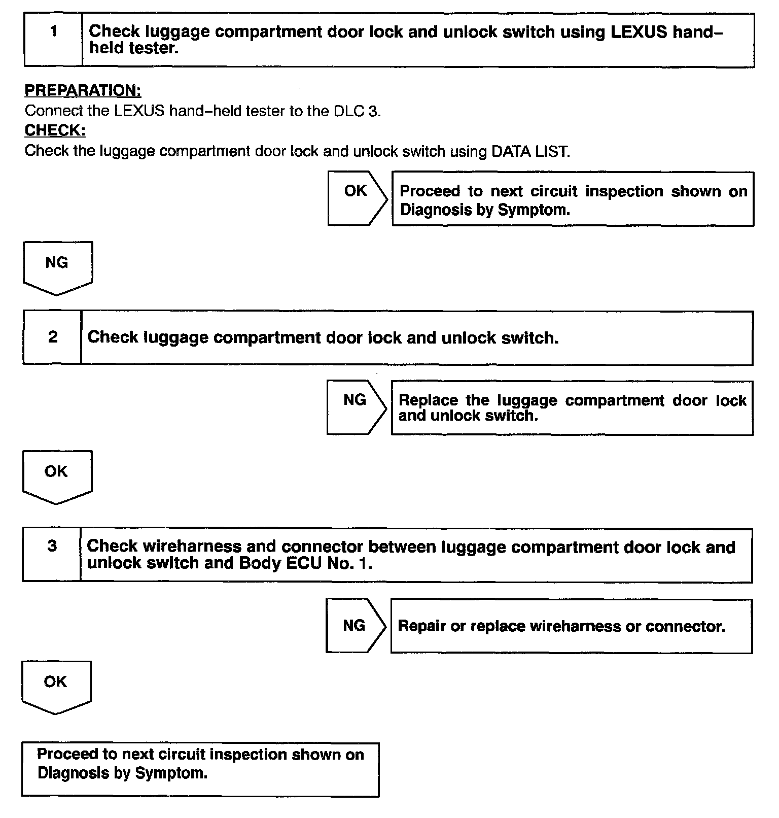 Body No.1 Control System / Luggage Compartment Door Lock and Unlock Switch CircuitCIRCUIT DESCRIPTION