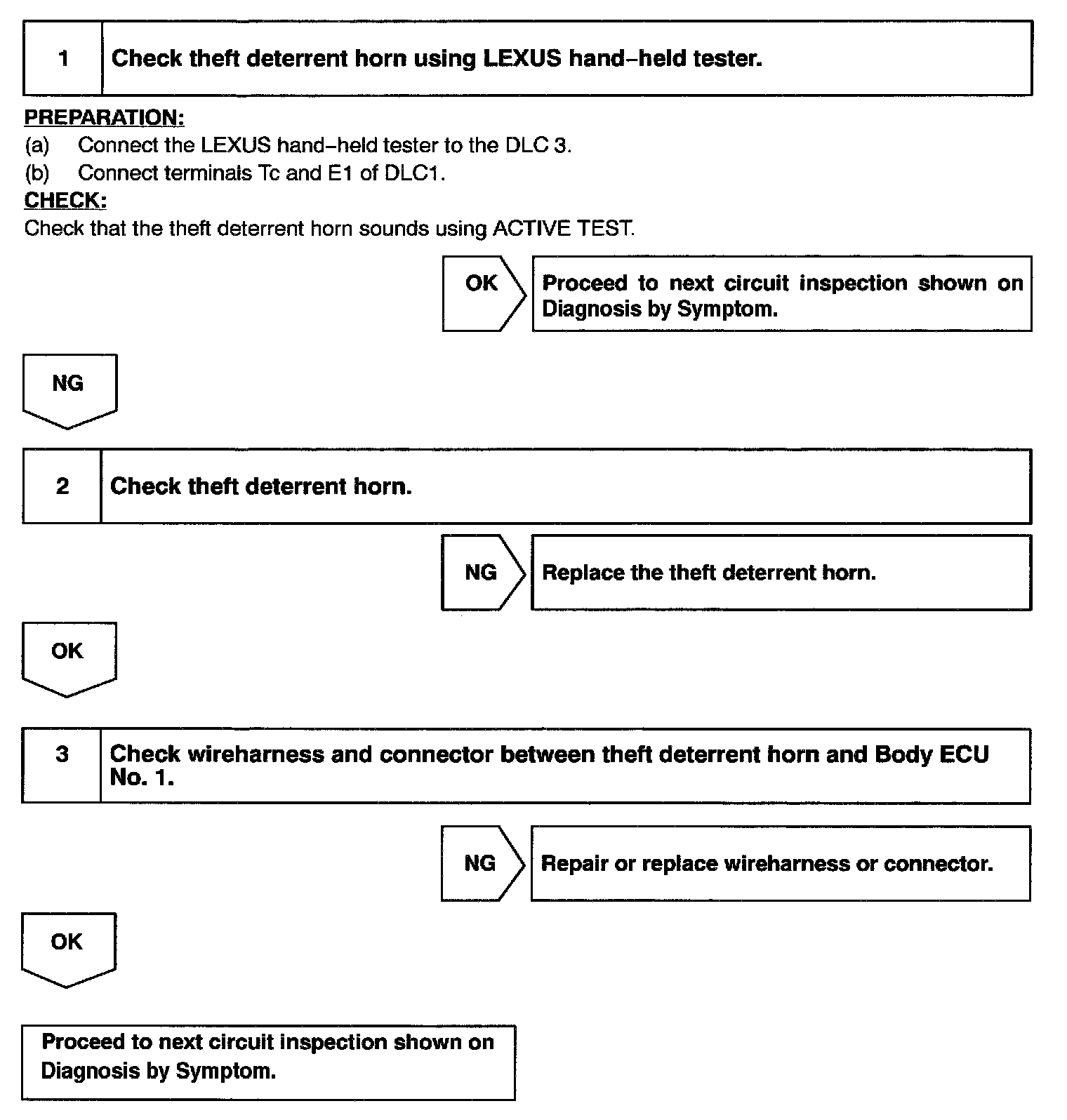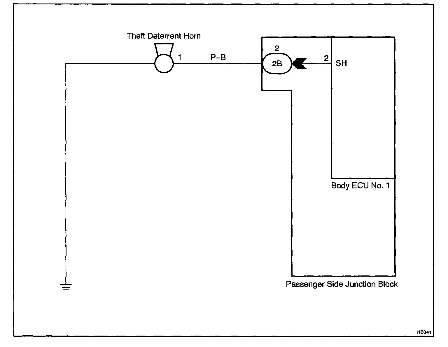 During warning of the theft deterrent system, the Body ECU No.1 activates the theft deterrent horn.