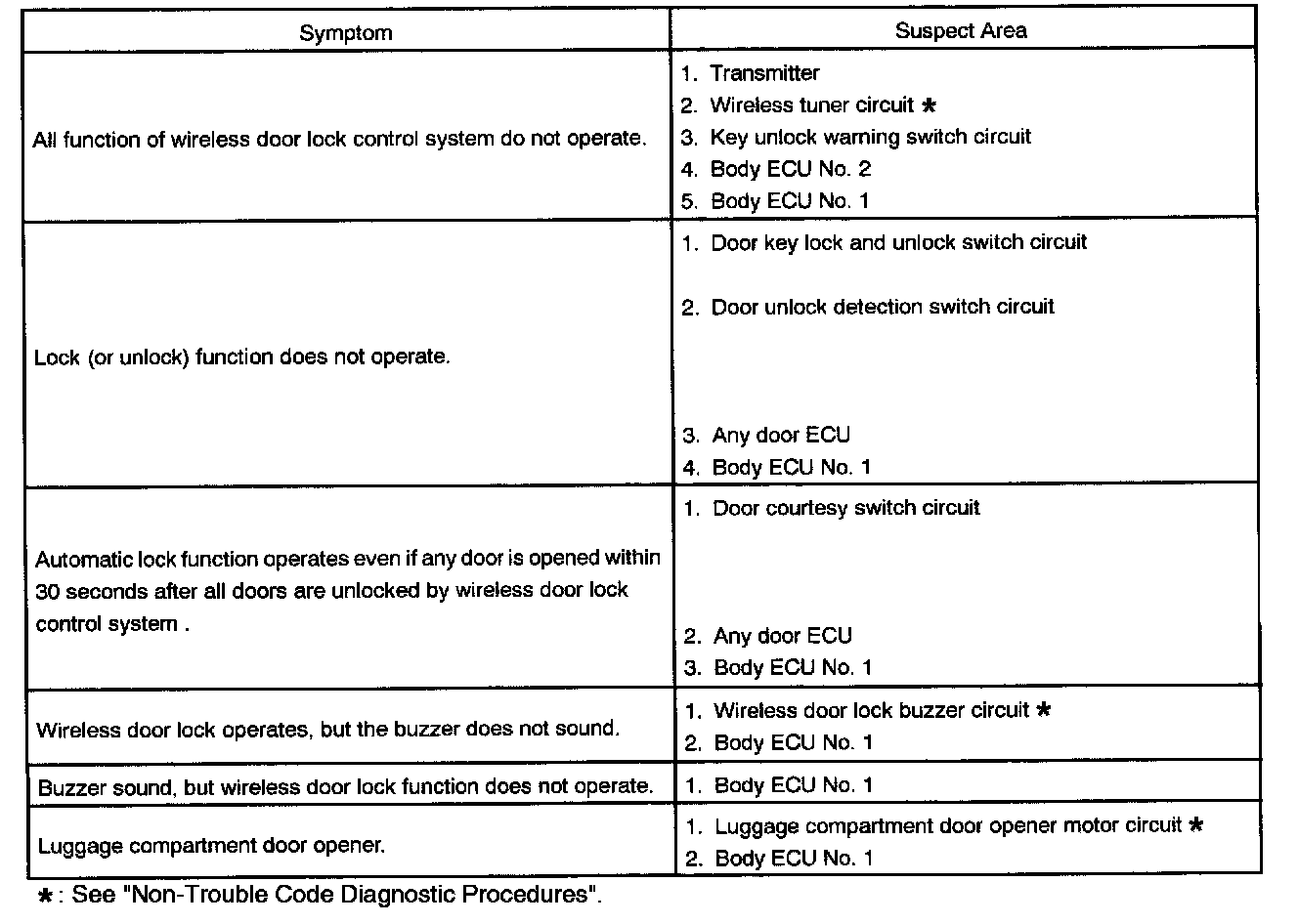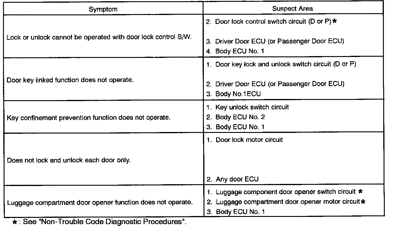 Problem Symptoms Table - Door Lock Control: